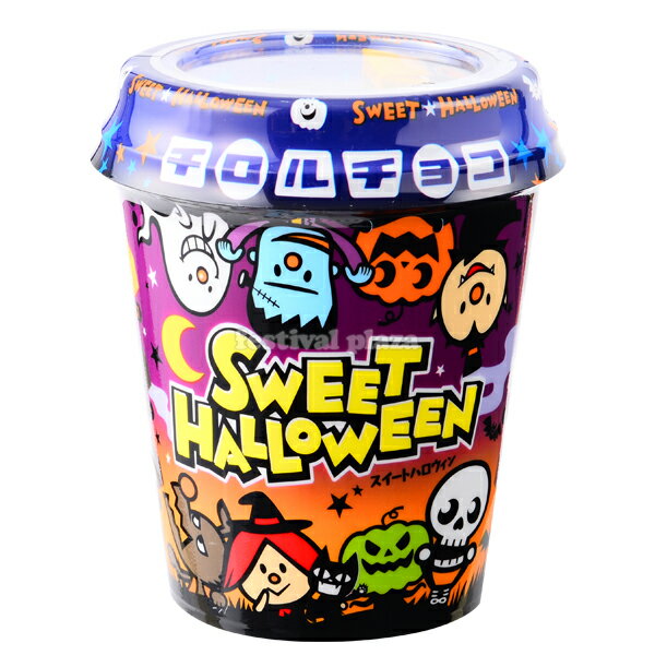 カラフルなチョコレートが入ったハロウィン柄のテトラパックがかわいいお菓子。